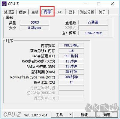 內(nèi)存標(biāo)簽頁(yè)會(huì)顯示容量、類型、頻率等參數(shù),幫助判斷是否開(kāi)啟雙通道或超頻效果。