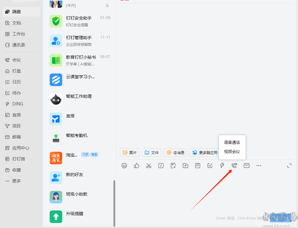 打開釘釘電腦版并登錄,點擊聊天輸入框上方的會議圖標,發(fā)起視頻會議。