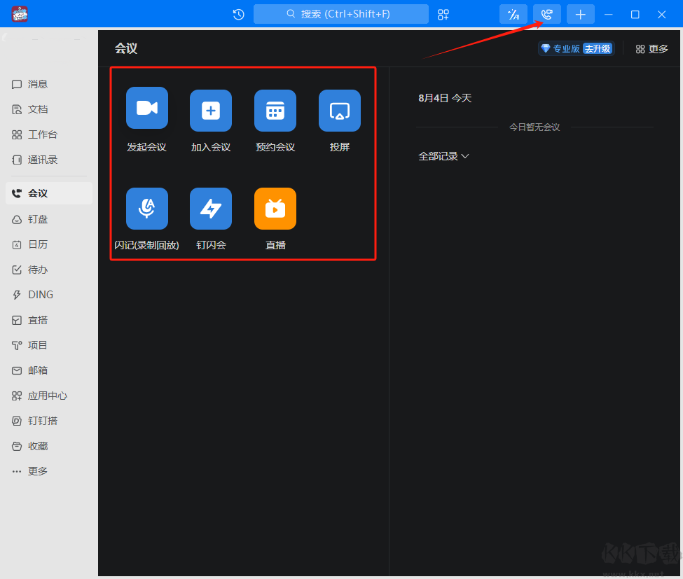 打開釘釘電腦版并登錄,直接點擊發(fā)起會議。