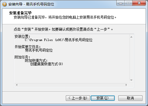 安裝向?qū)б褱蕚渫戤叄瑢㈤_始在您的電腦上安裝易訊手機號碼定位。