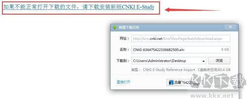 4、會(huì)把選中文獻(xiàn)題錄導(dǎo)出成文件,直接彈出下載對(duì)話框,選擇位置,單擊“下載”即可。如果沒(méi)有E-Study軟件下載完題錄文件后,單擊圖示箭頭處鏈接下載即可。