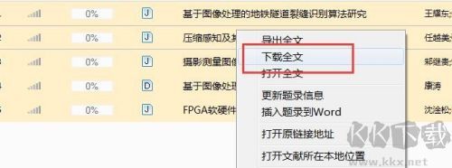 8、此時(shí)僅導(dǎo)入了文獻(xiàn),并沒(méi)有下載文獻(xiàn),選中要下載的文獻(xiàn),右擊鼠標(biāo),在彈出菜單中選擇“下載全文”即可打開(kāi)“下載器”界面,顯示下載進(jìn)度。
