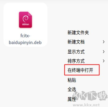1、在百度輸入法deb包所在目錄下打開(kāi)終端;