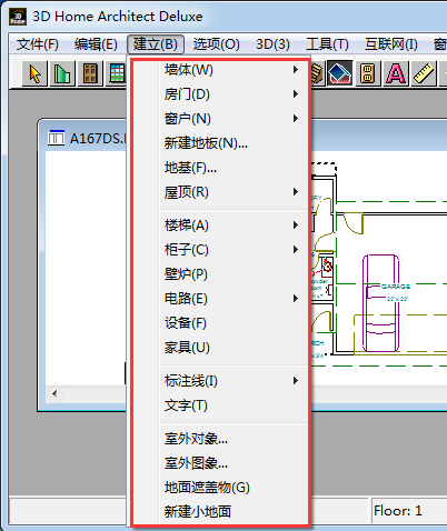設(shè)計(jì)工具,可以選擇墻、門、窗、樓層、地基、屋頂、樓梯、櫥柜、家具等;