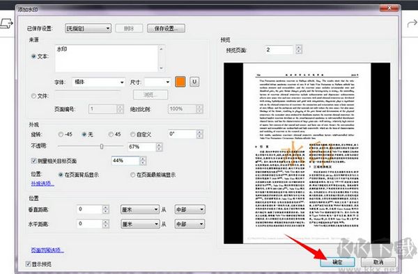 4、PDF添加水印之后,點(diǎn)擊右下角的“確定”按鈕。返回主界面可以看到水印效果。之后,選擇“文件”下的“保存”或“另存為”將文件保存在電腦上。
