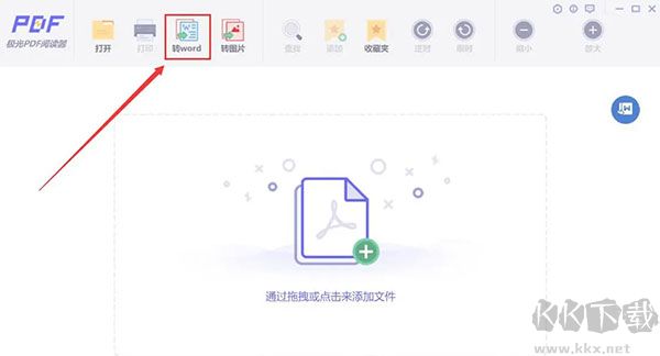 1、首先,我們打開(kāi)極光PDF閱讀器,在其向?qū)ы?yè)面中,點(diǎn)擊頂部功能欄中的“轉(zhuǎn)word”選項(xiàng)。