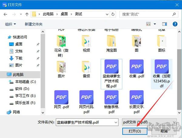 3、在彈出的窗口中,將需要提取頁(yè)面的PDF文件選中,并點(diǎn)擊“打開(kāi)”按鈕,將其導(dǎo)入極光PDF閱讀器。