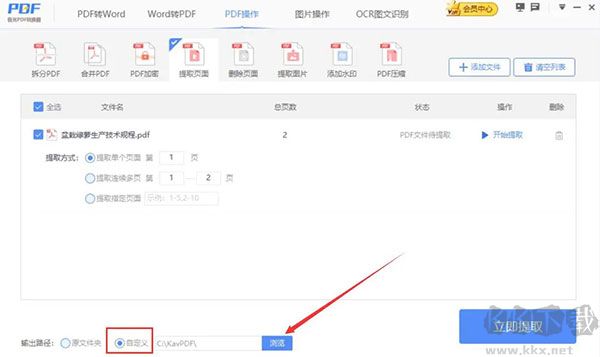 5、如果PDF提取頁(yè)面后的輸出路徑需要更改的話,就點(diǎn)擊極光PDF閱讀器中的“瀏覽”按鈕。