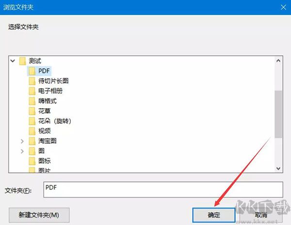 6、在彈出的瀏覽文件夾窗口中,選擇提取了PDF頁(yè)面后的保存路徑,再點(diǎn)擊“確定”按鈕。