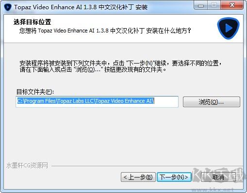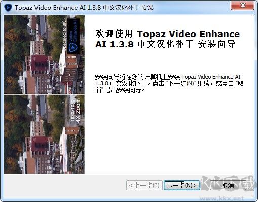 5、然后雙擊運(yùn)行漢化補(bǔ)丁文件夾下的文件“Topaz Video Enhance AI 1.3.8 中文漢化補(bǔ)丁.exe”,進(jìn)入安裝向?qū)?,點(diǎn)擊下一步