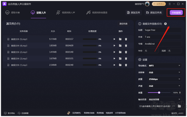 支持多文件同時(shí)進(jìn)行人聲/伴奏分離操作,大幅提升音頻處理效率。
