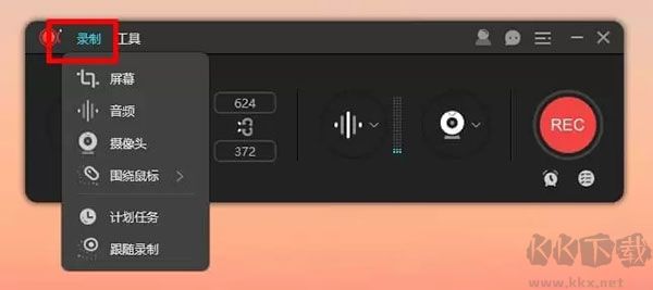 注意:如果你只想錄制聲音,可以點(diǎn)擊“錄制”>“音頻”,倒計(jì)時(shí)結(jié)束后就會(huì)錄制沒有畫面的音頻。另外,你也可以通過點(diǎn)擊“圍繞鼠標(biāo)”,選定畫面比例,錄制跟隨鼠標(biāo)方向移動(dòng)的屏幕畫面。