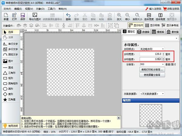 調(diào)整水印寬度為128,高度為128,調(diào)整后,如下圖所示: