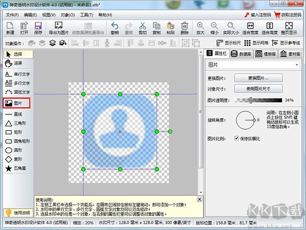 可調(diào)整圖片尺寸、透明度及旋轉(zhuǎn)角度。