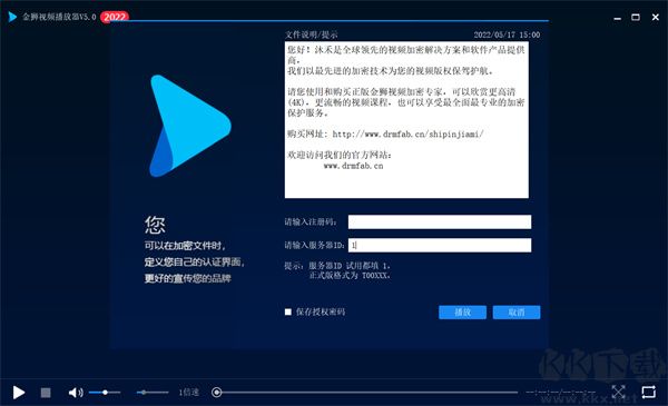 此處請?zhí)顚懡皙{加密端“添加文件”欄目中設(shè)定的播放密碼。