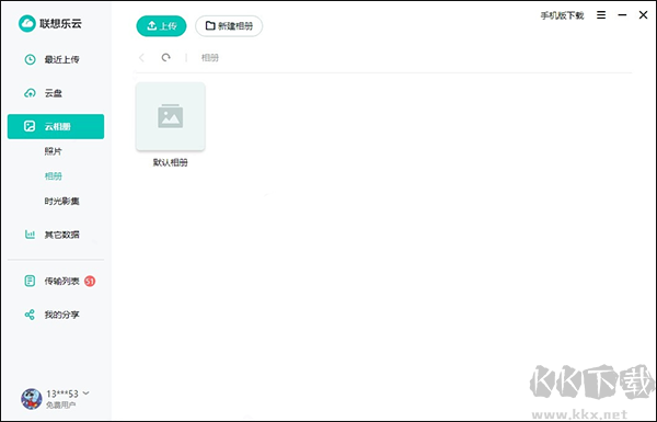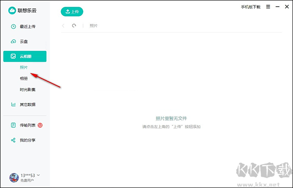 5、點擊左側(cè)照片按鈕就可以傳輸圖像,點擊上傳選擇圖像就可以保存到聯(lián)想樂云。