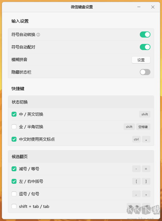 微信輸入法是一款由騰訊推出的一款輸入法軟件,它的界面簡潔,操作簡單,而且對于拼寫、錯字糾正、聯(lián)想打字等實用功能也是和其他的輸入法沒有任何區(qū)別。軟件的外觀也是非常的亮眼,清新淡雅的顏色,看著就非常的舒適。喜歡的朋友快來下載體驗吧!