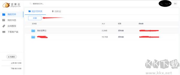 4、登陸堅(jiān)果云,然后點(diǎn)擊創(chuàng)建文件夾,這里我們創(chuàng)建文件夾joplin(名字不可以隨便起,只能為joplin)