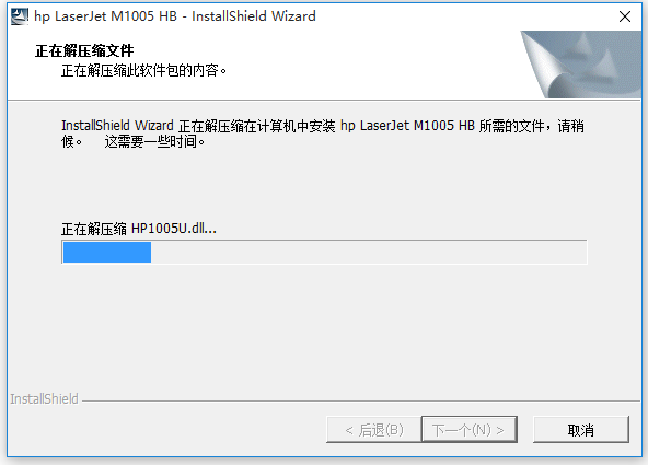 4、Instalhield Wizard正在解壓縮在計算機中安裝hp LaserJet M1005 HB所需的文件,請稍候。這需要一些時間。