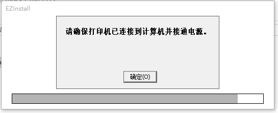 6、提示你確保打印機已經(jīng)連接到電腦并接通電源,我們在第一步時已經(jīng)成功連接上了,所以直接點擊確定,
