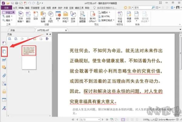 2、然后,點(diǎn)擊福昕高級(jí) PDF 編輯器左側(cè)的“查看頁面縮略圖”工具圖標(biāo)。