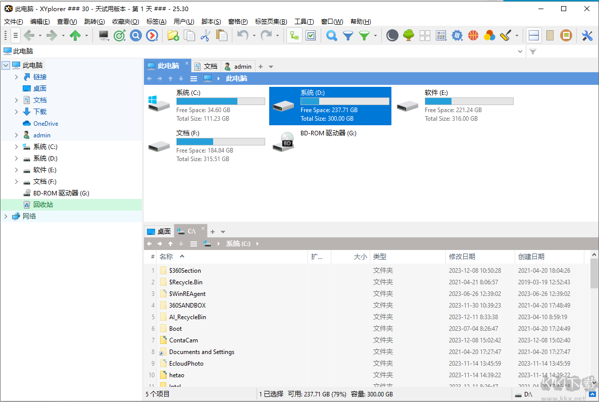 2、雙窗格模式:左右分欄顯示,方便文件對比和操作,適合習(xí)慣傳統(tǒng)文件管理方式的用戶。