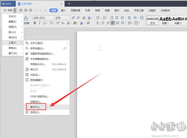 2、打開下拉之后選擇工具按鈕選項下的備份中心按鈕;