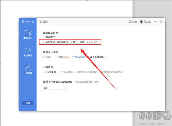 5、在備份模式下切換到定時備份,設置好時間,就可以自動保存。