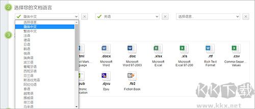 1、先點(diǎn)“選擇文件”,再勾選文檔語(yǔ)言。