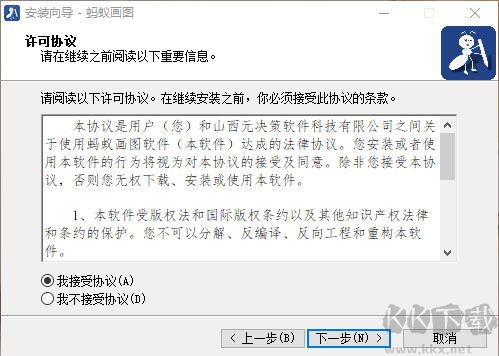 3、進(jìn)入下圖情況,勾選我接受,點(diǎn)擊下一步;