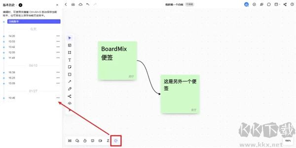 點擊左下角的「歷史版本」,可以在左側打開「版本歷史」的面板,查看博思白板過往自動保存的歷史記錄。