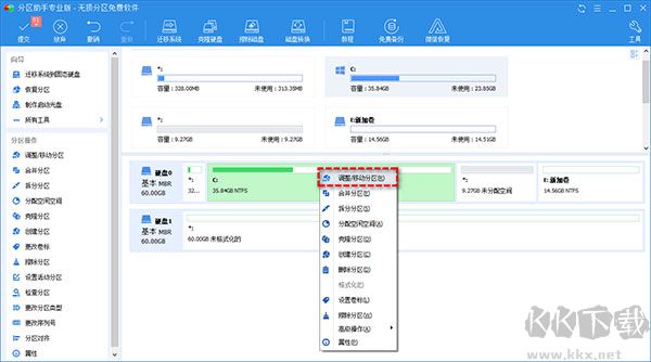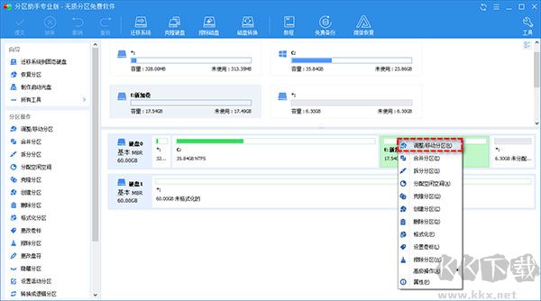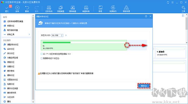 1、分區(qū)大小調(diào)整:能自由放大縮小分區(qū),里面的文件都不會(huì)丟。