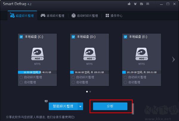 1、采用更智能的算法,自動(dòng)匹配最佳整理方式,讓不同磁盤(pán)都能發(fā)揮最佳性能。