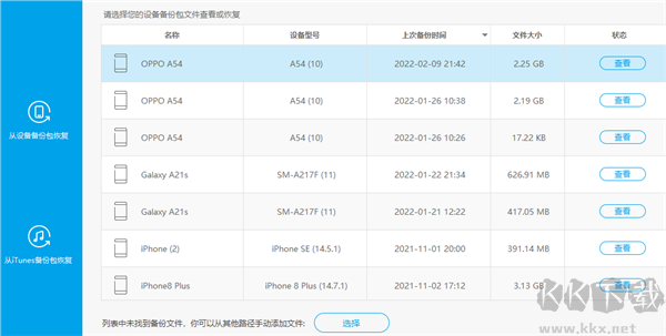 單擊還原按鈕后,程序?qū)@示此計(jì)算機(jī)上的所有 Android 備份文件。選擇您需要的備份文件,然后單擊它旁邊的查看。