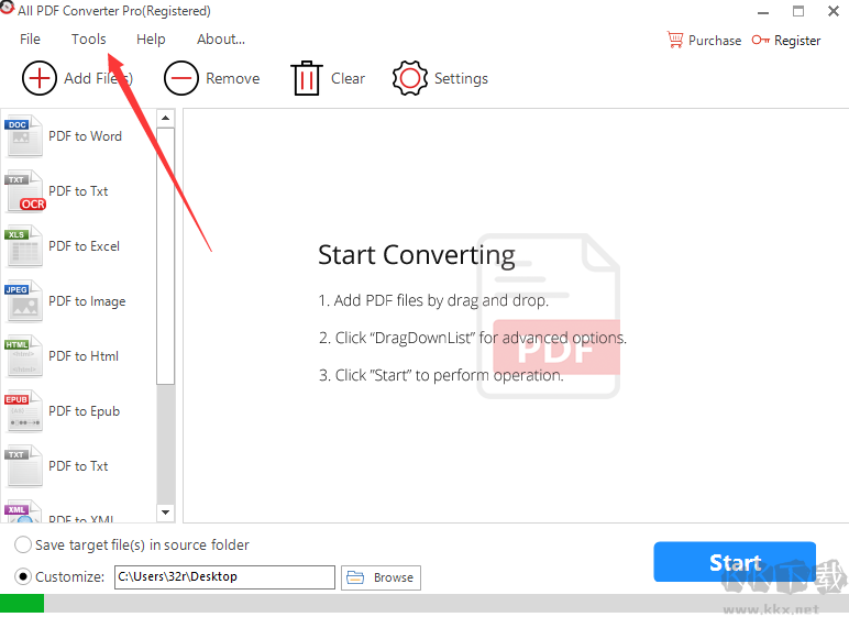 1、下載安裝進(jìn)入軟件,點(diǎn)擊Tools選項(xiàng);