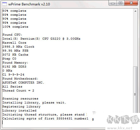 1、先下載軟件包,找到 wPrime.exe 雙擊打開,稍等片刻讓它完成初始化。