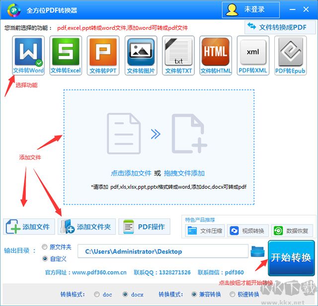 將PDF、XLS、XLSX、PPT、PPTX文檔轉換成Word。如果添加DOC,DOCX就可以直接轉成PDF。如果想轉成Excel,PPT,JPG等其他格式,只需點擊導航欄圖標即可