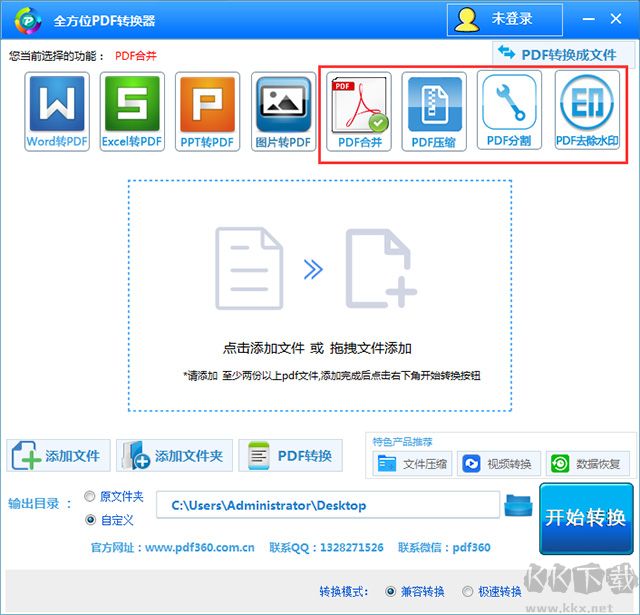 6、內置PDF合并工具,可通過功能菜單快速訪問。