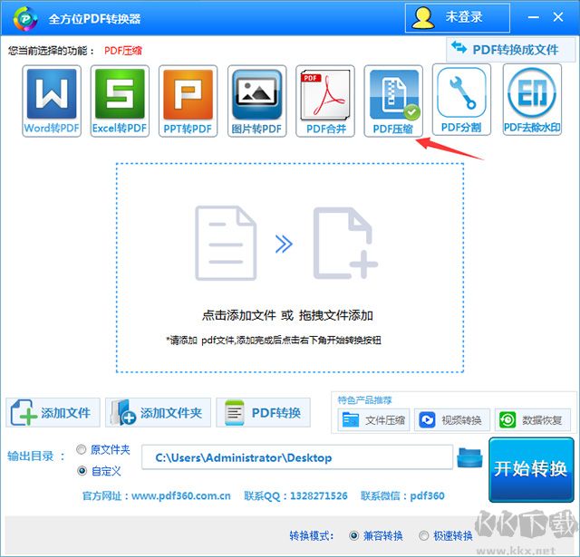 點擊右上角的切換按鈕或點擊左下角的PDF操作按鈕。選擇PDF壓縮,可以對PDF文件大小進行壓縮。