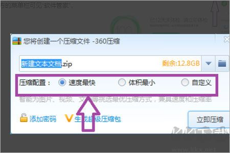 4、然后在新的界面里點(diǎn)擊選擇“立即壓縮”按鈕就可以設(shè)置把文件壓到最小了;