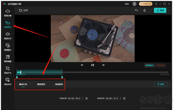 提供視頻剪輯/分割/合并/配樂/調(diào)色/片頭制作/水印添加七大核心功能。