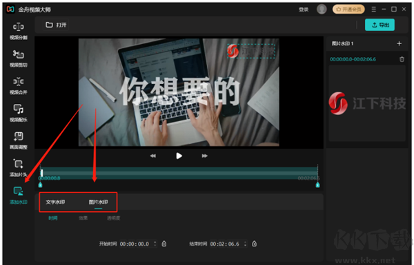 用戶剪輯視頻時,可以通過添加文字、圖片水印來表明歸屬權(quán),放心的將作品發(fā)布到網(wǎng)上。