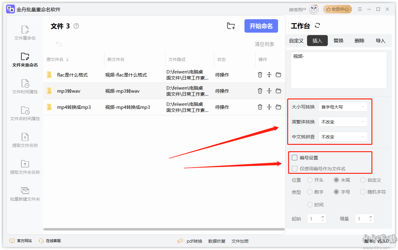 4、命名規(guī)則可以設(shè)置大小寫、繁體轉(zhuǎn)換和中英文轉(zhuǎn)換,必要的話還可以設(shè)置編號。