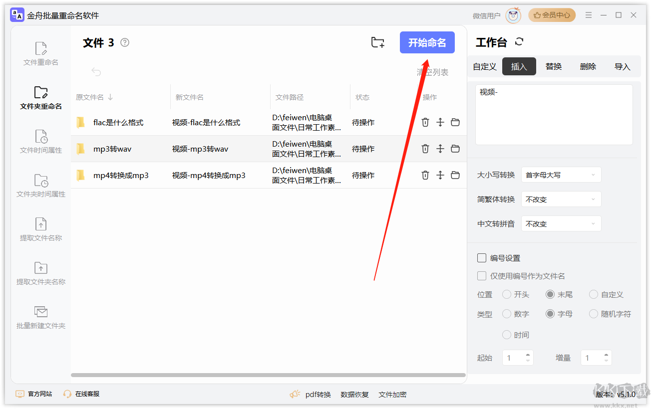 5、設(shè)置完成后,點擊“開始命名”就可以了。