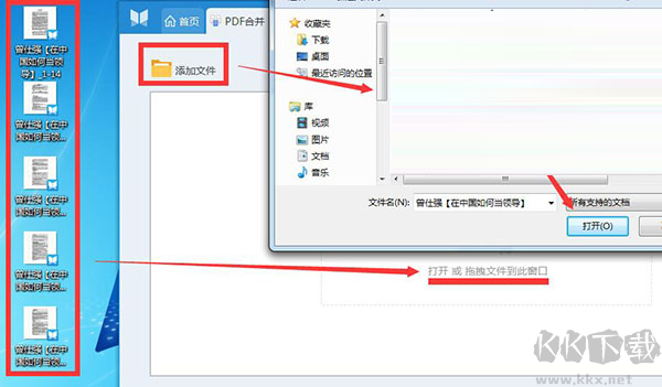 ②打開(kāi)“PDF合并”界面,添加需要拆分的PDF文件。打開(kāi)文件有兩種方法,把PDF文件拖入到閱讀器中或直接點(diǎn)擊左上方【添加文件】即可完成。