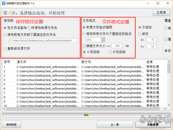 全部設(shè)置完畢后,點(diǎn)擊“開(kāi)始處理”按鈕,即可完成!