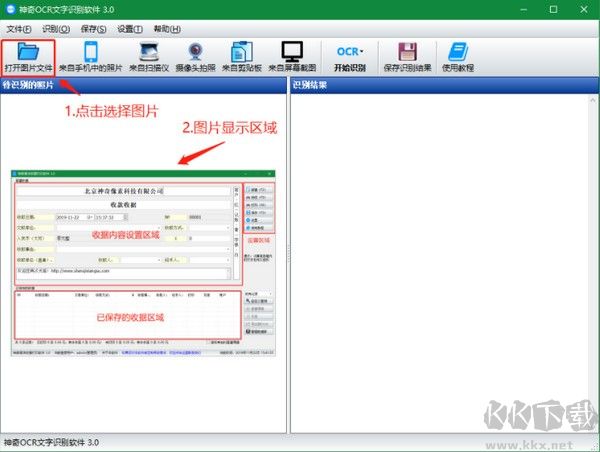 1、第一步:打開(kāi)等待識(shí)別文字的圖片,支持圖片文件、來(lái)自手機(jī)中的圖片、來(lái)自掃描儀的圖片、攝像頭拍照、來(lái)自剪貼板的圖片、來(lái)自屏幕截圖,打開(kāi)之后圖片會(huì)顯示在左側(cè)“圖片顯示區(qū)域”內(nèi)