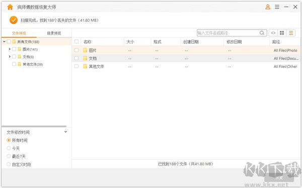 1、支持圖片、文檔、音頻、視頻等各類數(shù)據(jù)恢復(fù)。