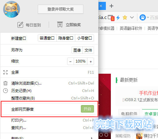 點(diǎn)擊右上角YY圖標(biāo),在打開的菜單中點(diǎn)擊全部網(wǎng)頁靜音