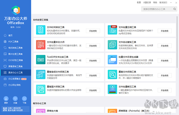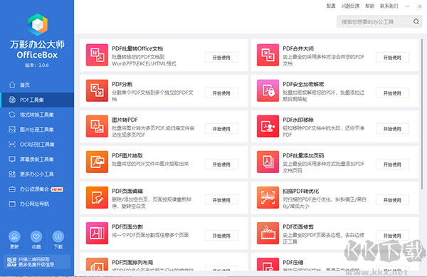 1、打開“萬彩辦公大師離線打包版”,在首頁可以看到非常多的功能;
